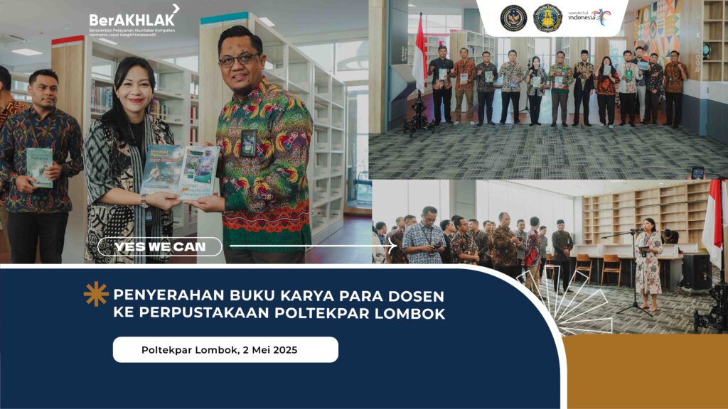 Politeknik Pariwisata Lombok memberikan apresiasi kepada 15 dosen yang telah menulis dan menerbitkan buku, melalui kegiatan serah terima 18 eksemplar dari 14 judul buku ke Perpustakaan Poltekpar Lombok. Kegiatan ini menjadi bentuk nyata komitmen institusi dalam mendorong produktivitas akademik dan memperkuat budaya literasi di lingkungan kampus. Buku-buku yang diserahkan mencakup berbagai bidang keilmuan seperti pariwisata, […]